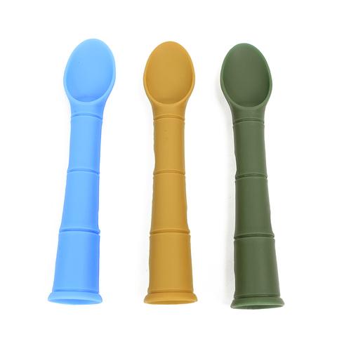 ช้อนให้อาหารเด็กทารกทำจากซิลิโคนทนความร้อนสีสันไม้ไผ่เกรดอาหารปราศจากสาร BPA